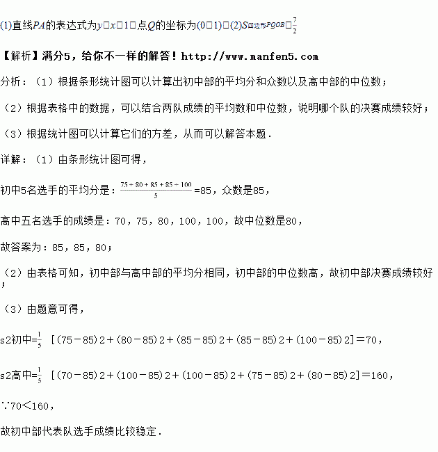 结合两队决赛成绩的平均数和中位数,分析哪个代表队的成绩较好;![]()