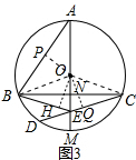 (3)过点O作OP⊥AB于P,作OH⊥BE于H,作OQ⊥CD于Q,连接OC,如图3,