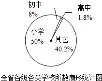 解答 解:(1)2010年全省教育发展情况统计表