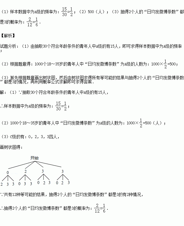 (2)试估计1000个18~35岁的青年人中“日均发微博条数”为A级的人数;