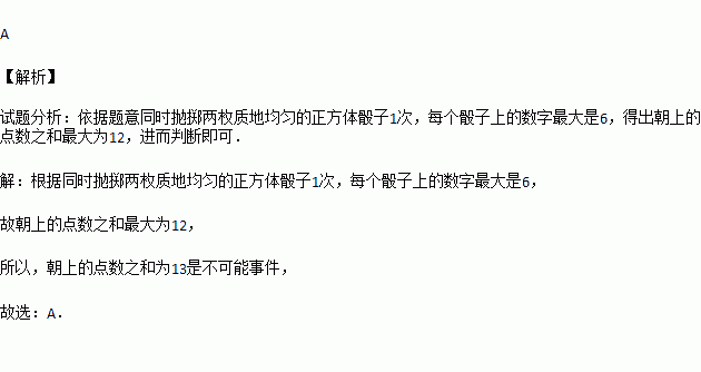 A.朝上的点数之和为13 B.朝上的点数之和为12