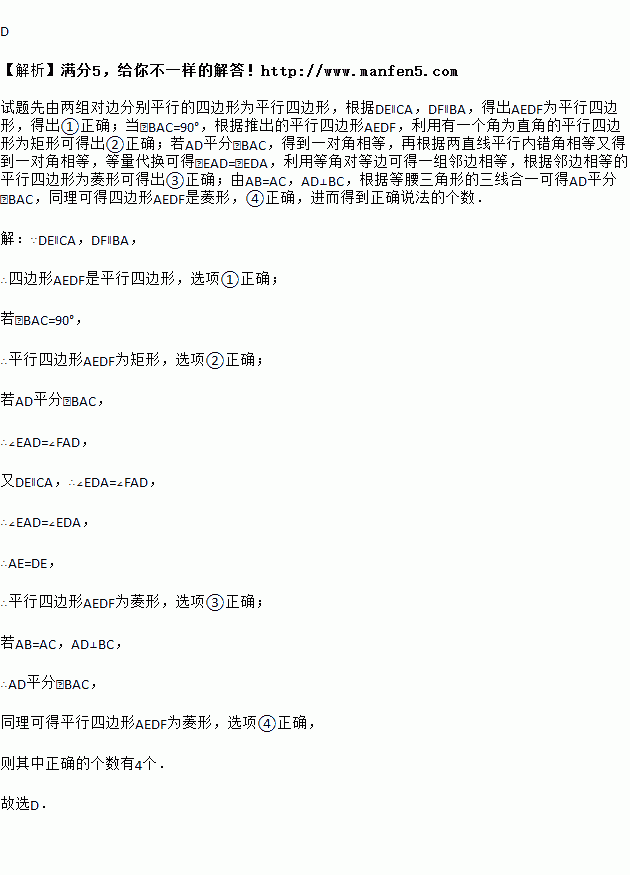 ①四边形AEDF是平行四边形;