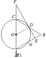 分析 (1)连结OD.先证明OD是△ABC的中位线,根据中位线的性质得到OD∥AB,再由DE⊥AB,得出OD⊥EF,根据切线的判定即可得出直线EF是⊙O的切线;