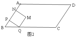 此时正方形PQMN与平行四边形ABCD重叠部分是梯形APQE,