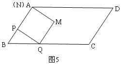 此时正方形PQMN与平行四边形ABCD重叠部分是五边形APQME,