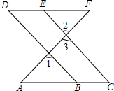 分析 由平行线的性质和已知条件得出∠CEF=∠D,证出BD∥CE,得出同位角相等∠1=∠3,再由对顶角相等∠2=∠3,即可得出结论.