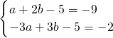 对于有理数x,y定义新运算:x*y=ax+by+5,其中a,b为常数.已知1*2=9,(-3)*3=2,求a,b的值.
