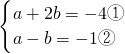 ①-②得,3b=-3,