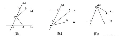 已知直线l1∥l2,直线l3和直线l1、l2交于点C和D,点P是直线l3上一动点
