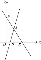 x+4的图象分别与x轴,y轴的正半轴交于点E、F,一次函数y=kx-4的图象与直线EF交于点A(m,2),且交于x轴于点P,