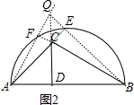 分析 对于图1,AC、BC交圆于F、E,连结AE、BF,它们相交于P点,然后连结CP并延长交AB于D,根据圆周角定理得到AE⊥BC,BF⊥AC,所以点P为高的交点,则CD为AB边上的高;对于图2,分别延长AC、BC交圆于E、F点,再延长AF和BE交于点Q,则延长QC交AB于D,则CD为AB边上的高.