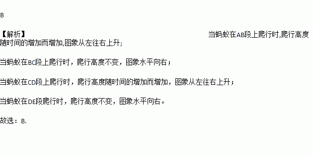 如图,如果一只蚂蚁以均匀的速度沿台阶 A1 → A2→ A3→ A4 →A5 爬行,那么蚂蚁爬行的高度 h 随时间 t 变化的图象大致是( )