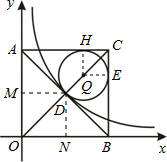 解答 解:设正方形对角线交点为D,过点D作DM⊥AO于点M,DN⊥BO于点N,设圆心为Q,切点为H、E,连接QH、QE.![]()