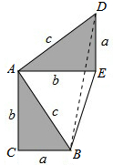 分析 连接BD,多边形ACBED的面积=△ABC的面积+△ABE的面积+△ADE的面积=$\frac{1}{2}ab$+$\frac{1}{2}$b2+$\frac{1}{2}$ab,多边形ACBED的面积=△ABC的面积+△ABD的面积+△BDE的面积=$\frac{1}{2}$ab+$\frac{1}{2}$c2+$\frac{1}{2}$a(b-a),得出$\frac{1}{2}ab$+$\frac{1}{2}$b2+$\frac{1}{2}$ab=$\frac{1}{2}$ab+$\frac{1}{2}$c2+$\frac{1}{2}$a(b-a),即可得出结论.