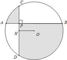 如图,⊙O中的弦AB⊥弦CD,垂足为点P,OH⊥弦CD,垂足为点H,若PH=3,OH=2,则圆中阴影部分面积与其他部分面积的差是