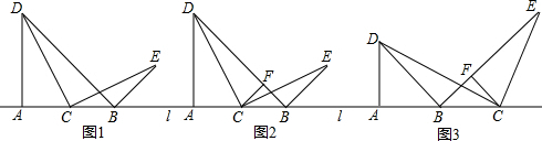 如图,线段AB在直线l上,点C是直线l上一动点,AD⊥AB,AD=AB,CE⊥CD,BE⊥BD.