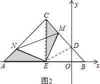 £¨2£©ÓÉÈ«µÈÈý½ÇÐεÄÅж¨¶¨ÀíSASÖ¤µÃ¡÷ANE¡Õ¡÷CME£¬Ôò¶ÔÓ¦±ß¡¢¶ÔÓ¦½ÇÏàµÈ£ºAE=CE£¬¡ÏNEA=¡ÏMEC£¬Ò×Çó¡ÏCAE=45¡ã£¬EΪABÖе㣬OE=6£¬Óɹ´¹É¶¨ÀíµÃDE=2$\sqrt{10}$£®