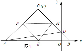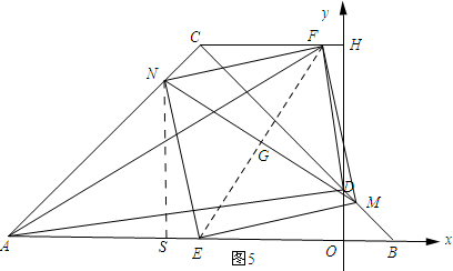 £¨3£©Èçͼ3Ëùʾ£»µ±¡ÏAFD=90¡ãʱ£®ÏÈÖ¤Ã÷¡÷ANF¡Õ¡÷DNF£¬´Ó¶øµÃµ½AN=MD£¬¼´$\sqrt{2}t$=6$\sqrt{2}$-$\sqrt{2}t$£¬¿ÉÇóµÃt=3s£»Èçͼ4Ëùʾ£ºµ±µãFÓëµãCÖØºÏʱCN=CM=AN£¬¹Ê´Ë2$\sqrt{2}$t=8$\sqrt{2}$¿ÉÇóµÃt=4£»Èçͼ5Ëùʾ£ºµ±¡ÏADF=90¡ã£¬Á¬½ÓEF½»MNÓÚµãG£¬¹ýµãN×÷NS¡ÍAB£¬´¹×ãΪS£¬ÏÈÖ¤Ã÷¡÷ADO¡×¡÷DFH£¬¿ÉÇóµÃµãFµÄ×ø±êΪ£¨-$\frac{6}{7}$£¬8£©£¬ÓÉÖеã×ø±ê¹«Ê½¿ÉÖªµãGµÄ×ø±êΪ£¨-$\frac{24}{7}$£¬4£©£¬È»ºóÔÙ¸ù¾ÝÇóµÃEF¡¢MN¡¢ACµÄ½âÎöʽ£¬´Ó¶ø¿ÉÇóµÃµãNµÄºá×ø±êΪx=-$\frac{1196}{161}$£¬È»ºó¸ù¾Ýt=AS¿ÉÇóµÃ£ºt=$\frac{46}{7}$£®