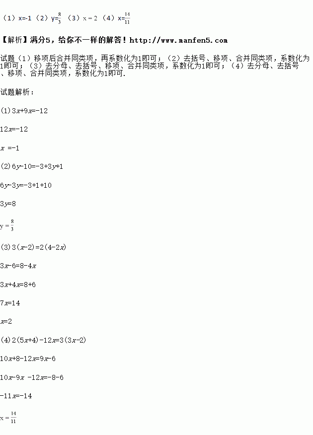 科目:初中数学 来源:人教版初中数学七年级上第三章3.2 解一元一次方程(移项与合并同类项)同步练习 题型:单选题