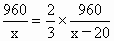 设甲单独加工完这批产品用 x天,则乙需(x-20)天,甲每天的加工数量为 |