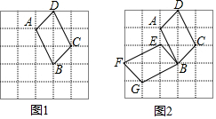 解答 解:(1)如图1所示:平行四边形ABCD即为所求;(2)如图2所示:平行四边,BEFG即为所求,将?ABCD绕点B至少逆时针旋转90度得到.故答案为:90.