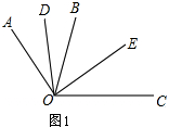 分析 由∠AOB:∠BOC=3:5,可设∠AOB=3x,∠BOC=5x,由OD、OE分别是∠AOB和∠BOC的平分线,可得∠AOD=∠BOD=$\frac{1}{2}$∠AOB=1.5x,∠BOE=∠COE=$\frac{1}{2}$∠BOC=2.5x,由∠DOE=20°,当OB在∠AOC内部时,∠DOE=∠DOB+∠BOE;当OB在∠AOC外部时,∠DOE=∠DOE-∠BOD;可以求出x的值,从而可求出∠AOB和∠BOC的度数.