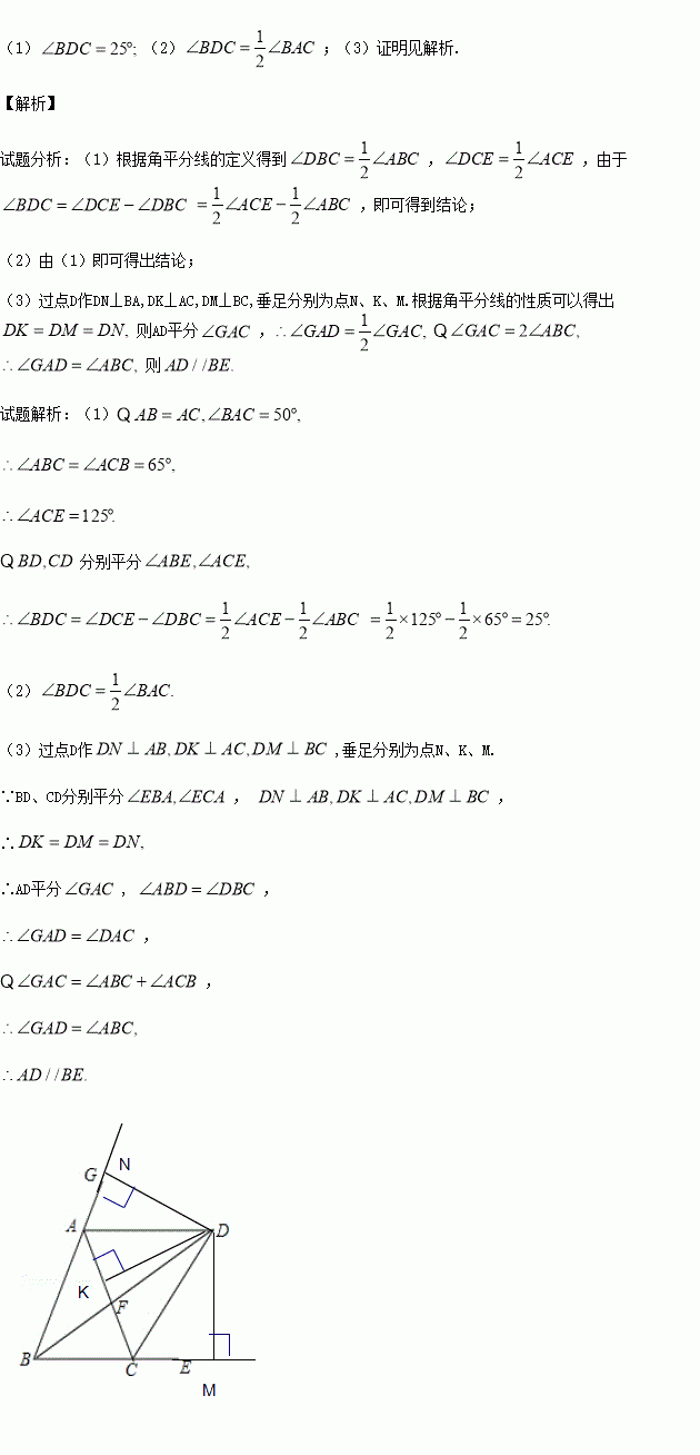 (1)当∠BAC=50°时,求∠BDC的度数;