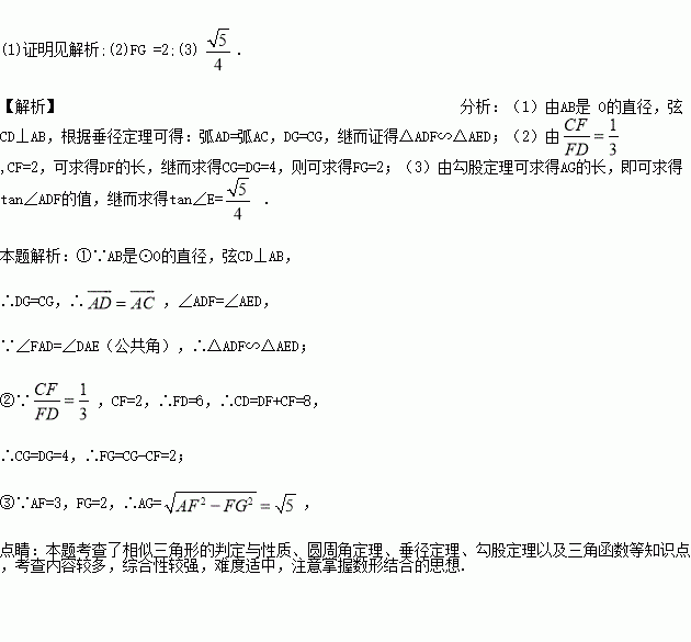 ,连接AF并延长交⊙O于点E,连接AD、DE,若CF=2,AF=3.