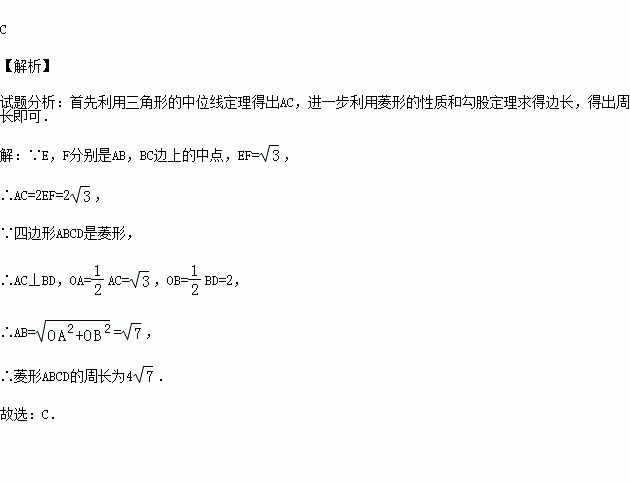 如图,菱形ABCD的对角线AC,BD相交于O点,E,F分别是AB,BC边上的中点,连接EF.若EF=