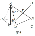 (3)①如图3中,将△ADF绕点A顺时针性质90°得到△ABH,连接HE.![]()