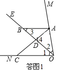 ②如答图1,∵∠MON=80°,且OE平分∠MON,