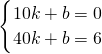 (2)设一次函数y=kx+b,将(10,0),(40,6)代入,