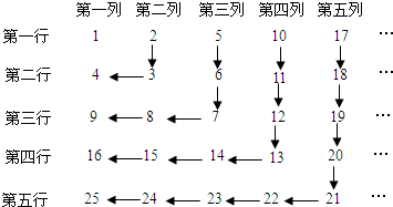 正整数按图中的规律排列.由图知,数字6在第二行,第三列.请写出数字2014在第