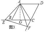 (3)过点A作AG⊥BC于点G,过点F作FH⊥EC于点H,根据FH=CF•cos30°,得到CF,根据线段的和差即可得到结论.