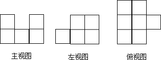 分析 (1)由已知条件可知,主视图有3列,每列小正方数形数目分别为2,1,2,左视图有3列,每列小正方形数目分别为1,2,2,俯视图有3列,每列小正方形数目分别为3,3,1.据此可画出图形;