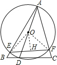 分析:首先连接OE,OF,过O点作OH⊥EF,垂足为H,可求得半径OE的长,又由当AD为△ABC的边BC上的高时,直径AD最短,即OE最小,则EF最小,可求得AD的长,由三角函数的性质,即可求得AB的长.