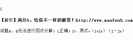 C. a3-4a2=a2(a-4) D. 1-4x2=(1+4x)(1-4x)