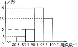 | 跳绳数/个 | 81 | 85 | 90 | 93 | 95 | 98 | 100 |