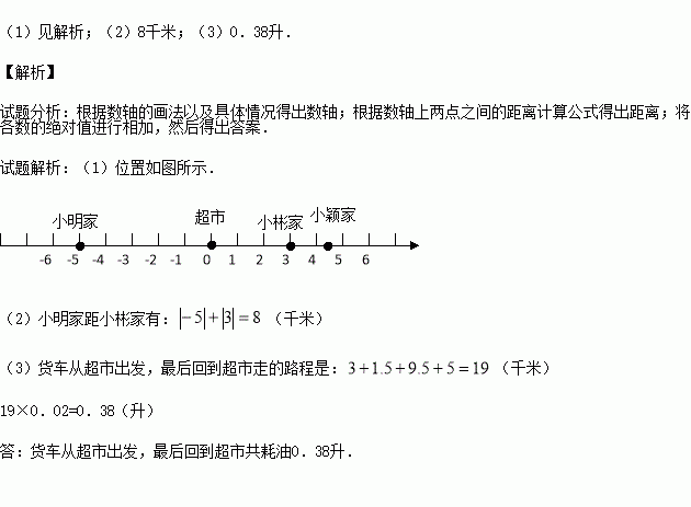 一辆货车从超市出发,向东走了3千米到达小彬家,继续向东走了1.5千米到达小颖家,然后向西走了9.5千米到达小明家,最后回到超市.