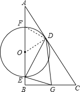 ·ÖÎö£º£¨1£©Á¬½ÓOD£¬DF£®ÄÇôOD¡ÍAC£¬Ôò¡ÏAOD=60¡ã£¬¡ÏAED=30¡ã£®ÓÉÓÚ¡ÏDEG=90¡ã£¬Òò´Ë¡ÏBEG=60¡ã£¬Òò´Ë±¾Ìâ¿É·ÖÁ½ÖÖÇé¿ö½øÐÐÌÖÂÛ£º