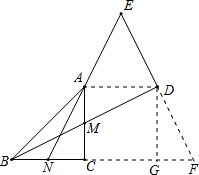(3)延长ED交BC延长线于点F,过D作DG垂直于CF,由EN=2AN,得到A为EN的中点,再由AD与NF平行,得到D为EF中点,即AD为中位线,利用中位线定理得到AD等于NF的一半,利用等量代换得到GF=AM,利用SAS得到三角形ADM与三角形DFG全等,利用全等三角形对应角相等得到∠ADB=∠FDG,由∠ADG为直角,利用等量代换及垂直的定义变形即可得证.