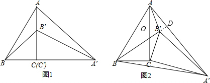 (2)(1)中的结论仍成立,证明如下:如图,设BB′的延长线与AA′交于点D,设∠ACB′=α,由题意得: