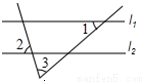 如图,直线l1∥l2,∠1=40?,∠2=75?,则∠3等于(? )