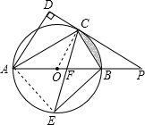 ¢ÛÊ×ÏÈÁ¬½ÓAE£¬ÓÉÔ²ÖܽǶ¨ÀíÓëÏÒCEƽ·Ö¡ÏACB£¬¿ÉµÃ¡÷ABEÊǵÈÑüÖ±½ÇÈý½ÇÐΣ¬¼Ì¶øÇóµÃÖ±¾¶ABµÄ³¤£¬ÓÉBC=$\frac{1}{2}$OP£¬¿ÉµÃBCÊÇÖÐÏߣ¬¡÷OBCÊǵȱßÈý½ÇÐΣ¬¼Ì¶øÇóµÃÒõÓ°²¿·ÖµÄÃæ»ý£»