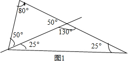 解答 解:如图1:直线把75°的角分成25°的角和50°的角,![]()