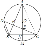分析 (1)连接AC,由垂径定理得出BN=CN,$\widehat{BM}=\widehat{CM}$,由圆周角定理证出∠BAM=∠CAM,∠BDC=∠BAC,即可得出结论;