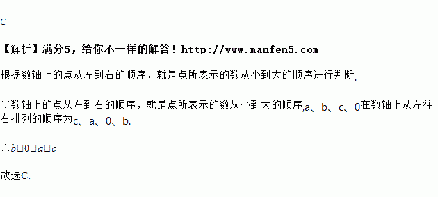 A. c>a>0>b B. a>b>0>c C. b>0>a>c D. b>0>c>a