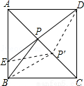 如图,在正方形ABCD中,E是AB上一点,BE=2,AE=3BE,P是AC上一动点.则当PB+PE的值为最小值时,点P的位置在( ).