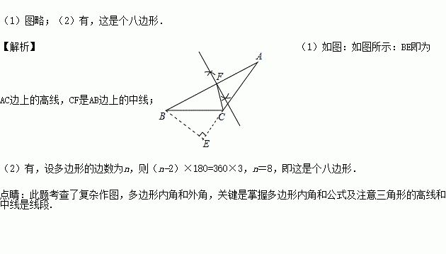 (2)有没有这样的多边形,它的内角和是它的外角和的3倍?如果有,请求出它的边数.