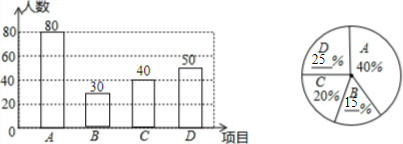 (2)根据百分比的意义即可求得B、C项目的人数以及B、D所占的百分比,从而补全图形.
